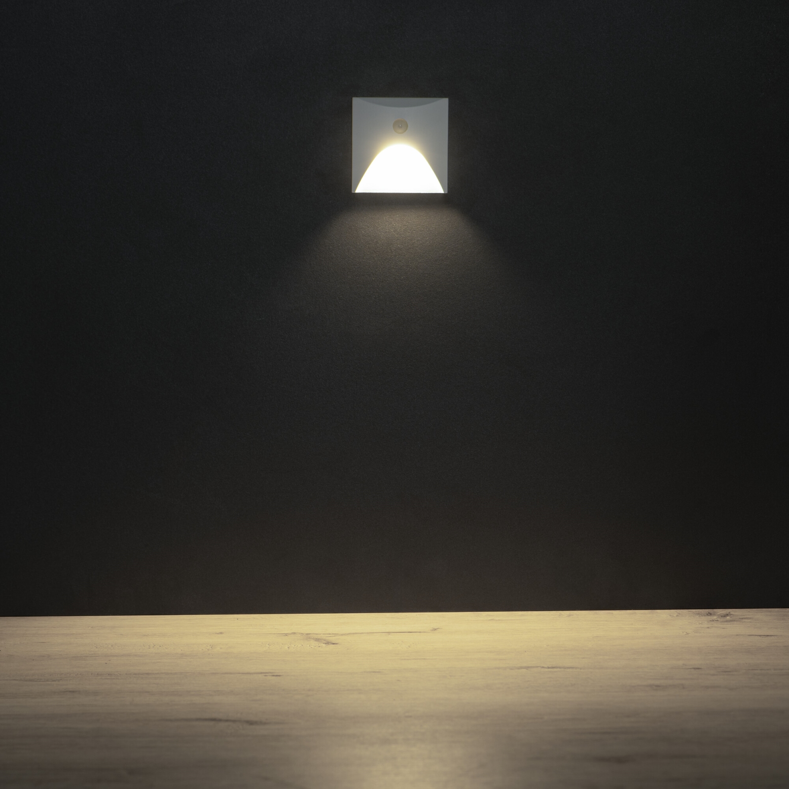 • Aplica LED pentru scări EXIN LED/2,5W/230V 3000K IP65, albă, pătrată, cu senzor de mișcare și de amurg
