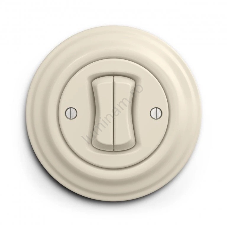 Kliklap - Întrerupător dublu pentru scară, retro, cu ramă nr. 6+6, bej