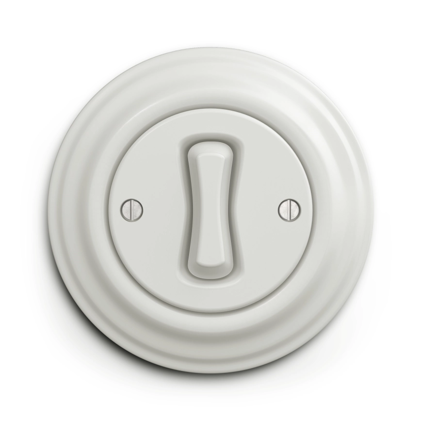 • Kliklap - Buton retro cu ramă, alb, din ceramică