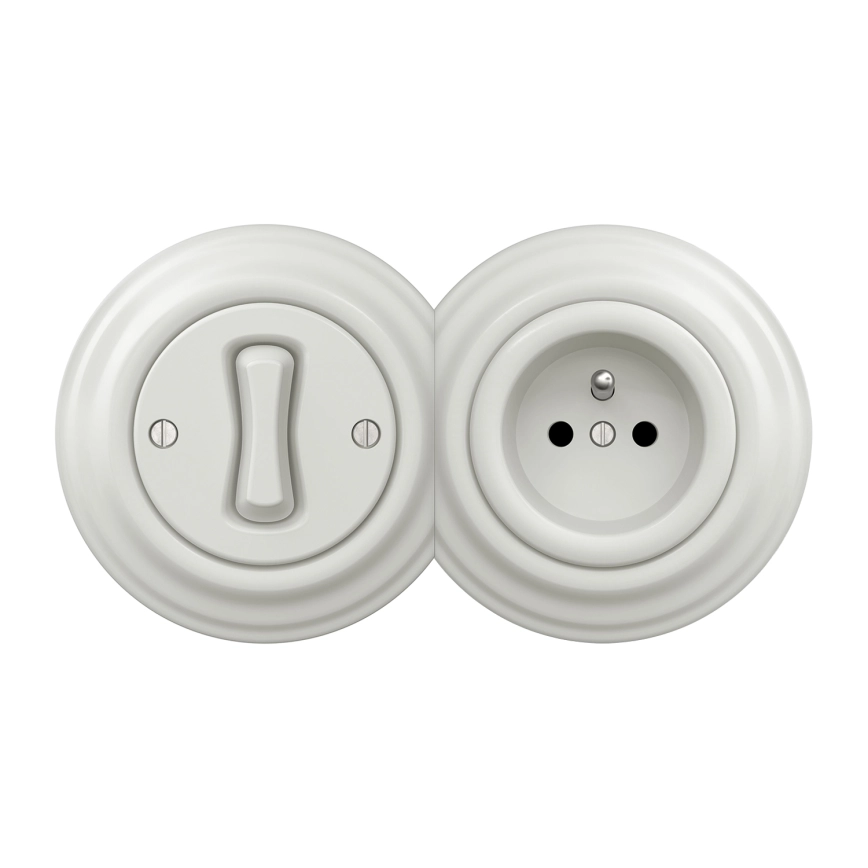 Kliklap - Întrerupător retro unipolar nr. 1 și priză 230 V cu ramă ceramică albă