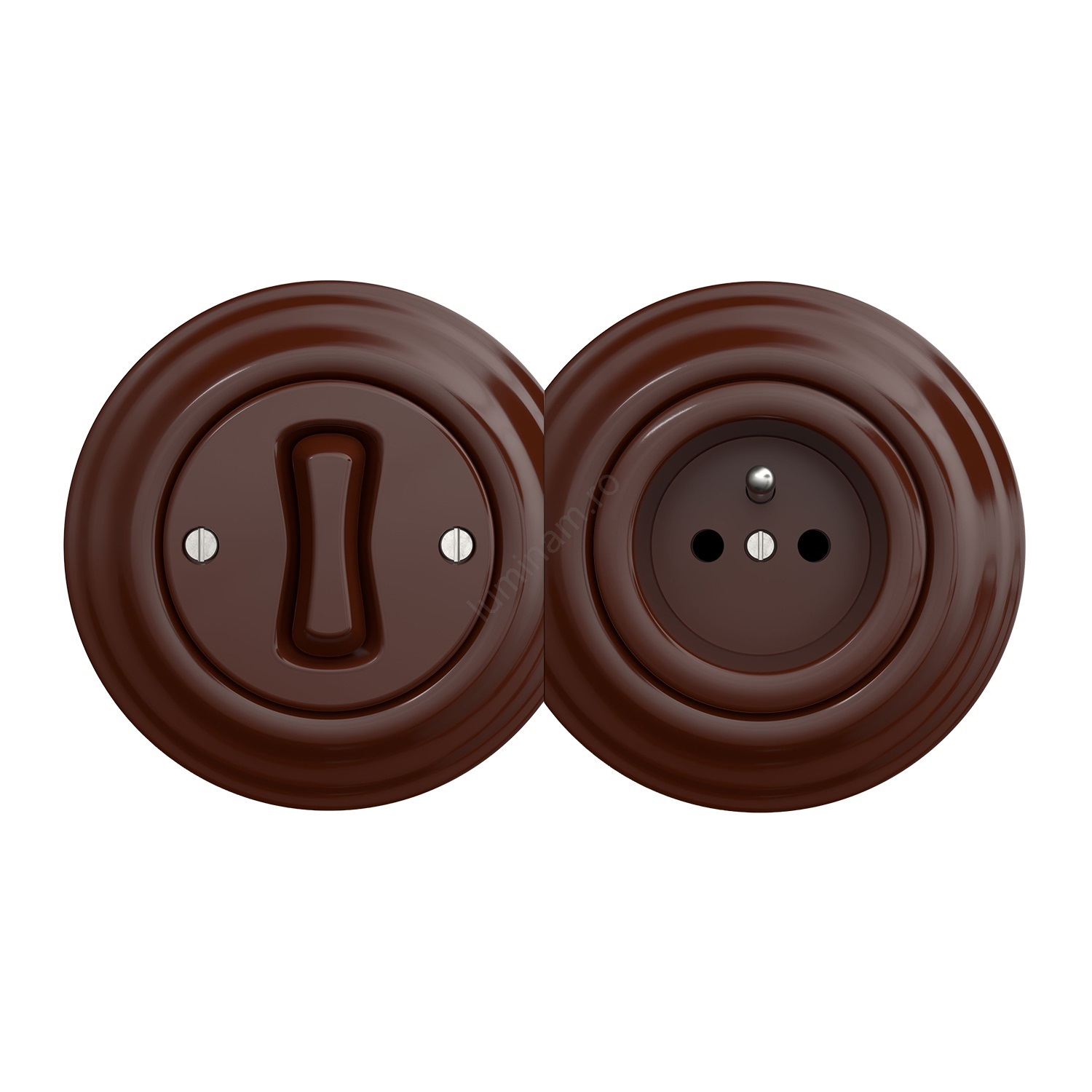 Kliklap - Întrerupător retro unipolar nr. 1 și priză 230V cu ramă, maro
