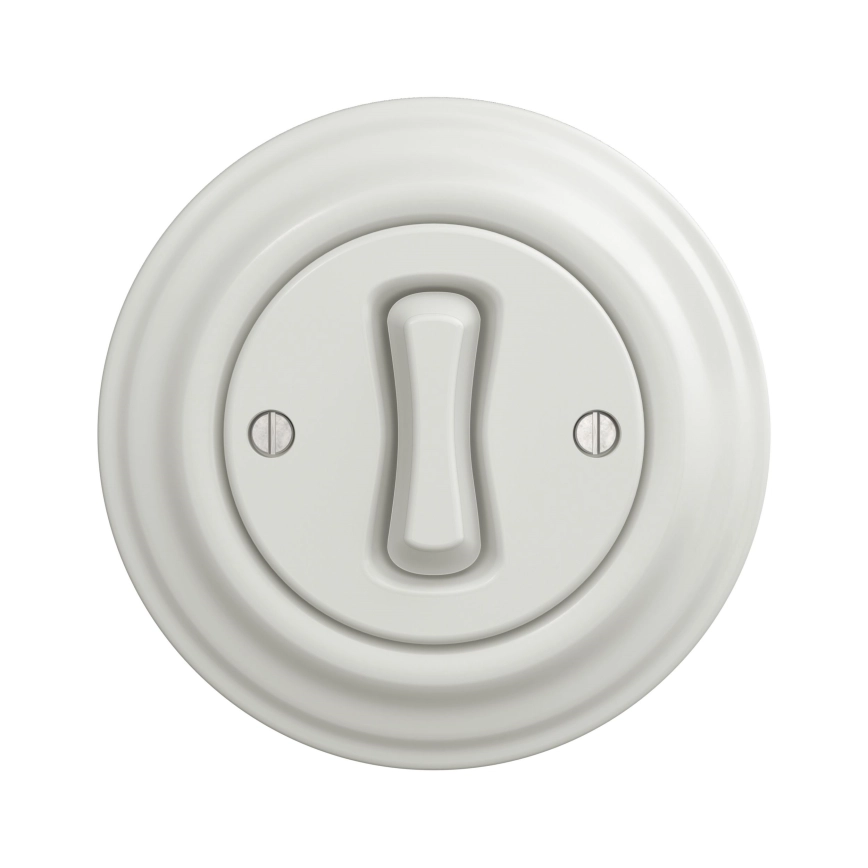 • Kliklap - Comutator unipolar retro cu ramă nr. 1, alb ceramic