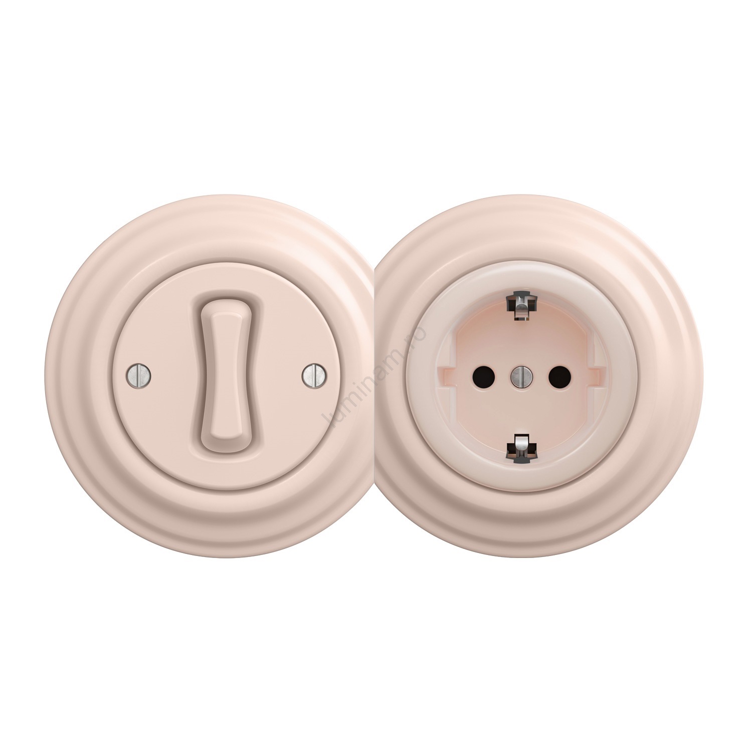 Kliklap - Întrerupător retro unipolar nr. 1 și priză SCHUKO 230V cu ramă, roz vintage