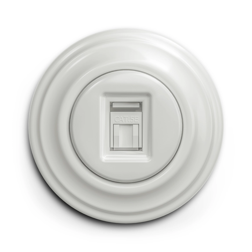 • Kliklap - Priză de date retro cu ramă, ceramică, albă