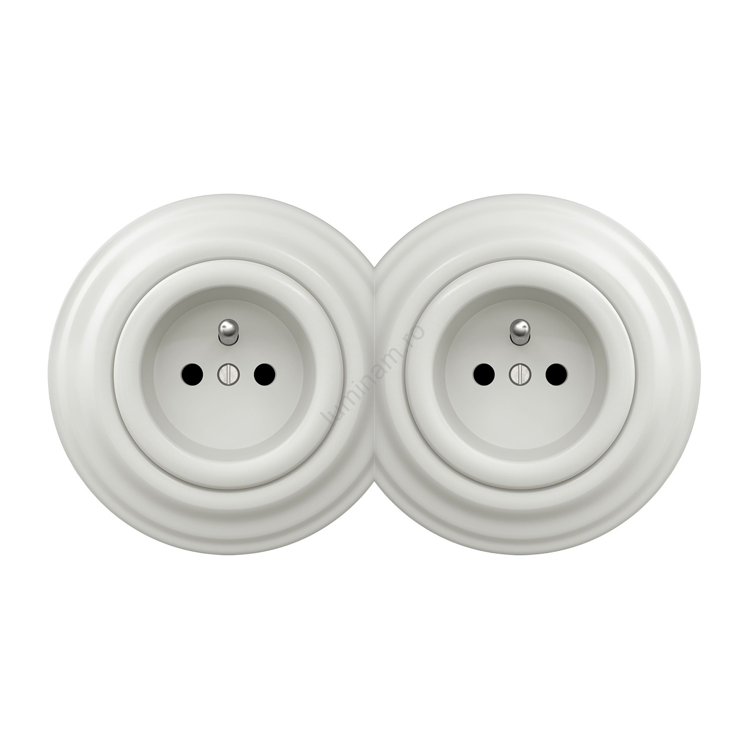 Kliklap - Priză dublă retro de perete cu ramă 230V albă