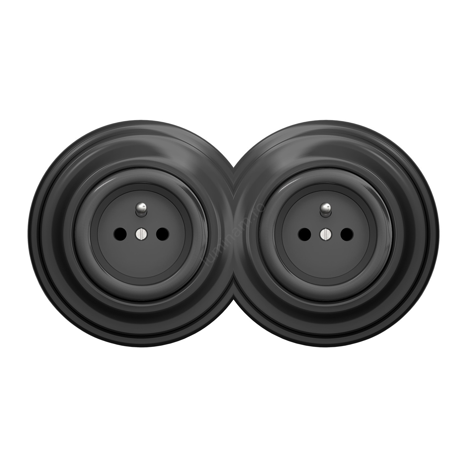 • Kliklap - Priză dublă retro de perete cu ramă nr. 1, neagră