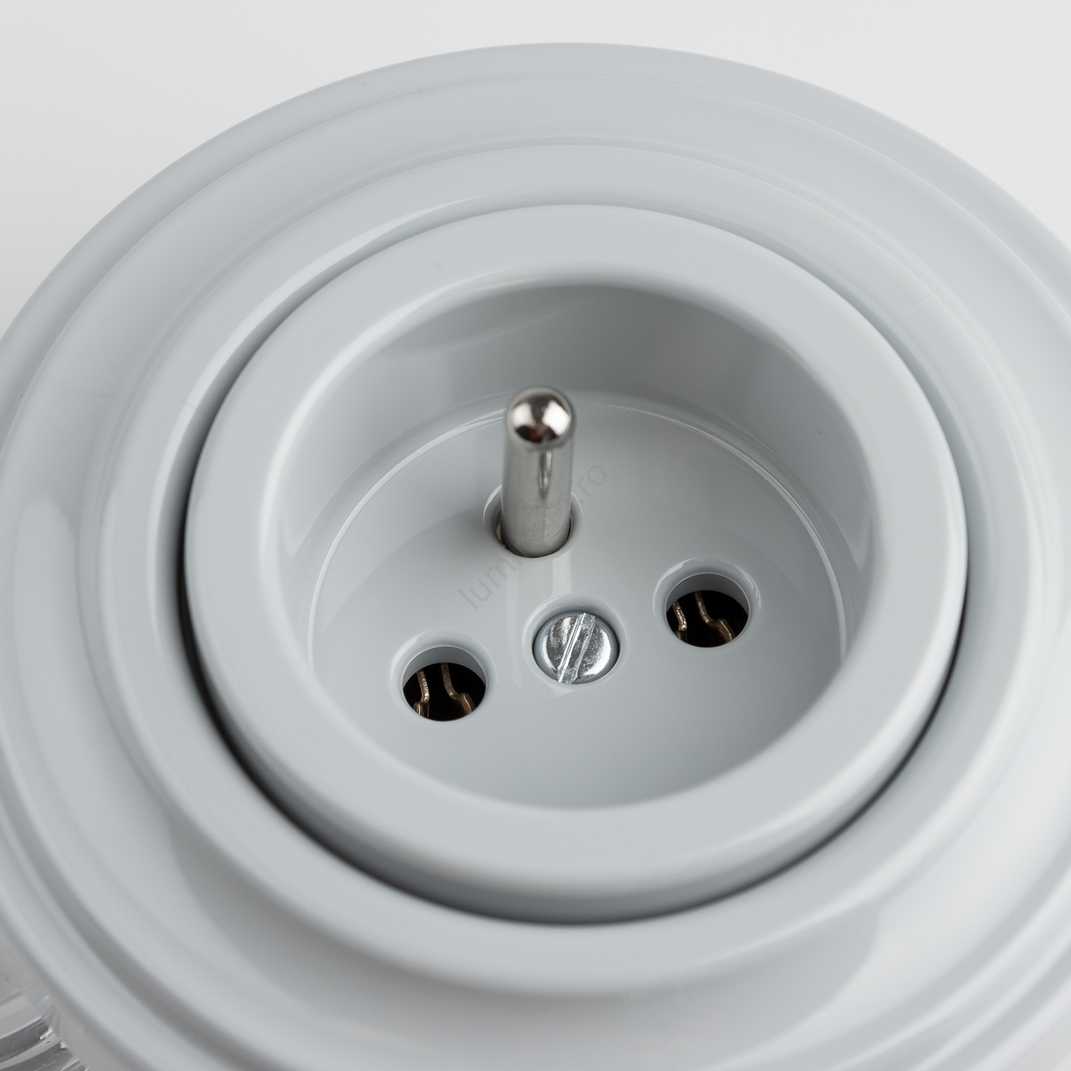 • Kliklap - Priză retro de perete cu ramă, din ceramică, albă, 230 V