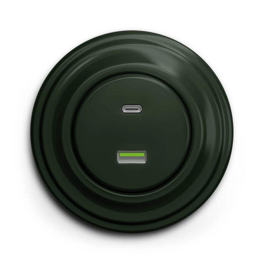 • Kliklap - Priză USB retro A+C cu ramă, verde