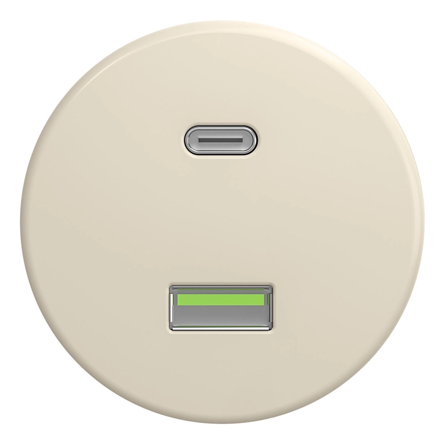 Kliklap - Priză USB retro A+C, fără ramă, bej