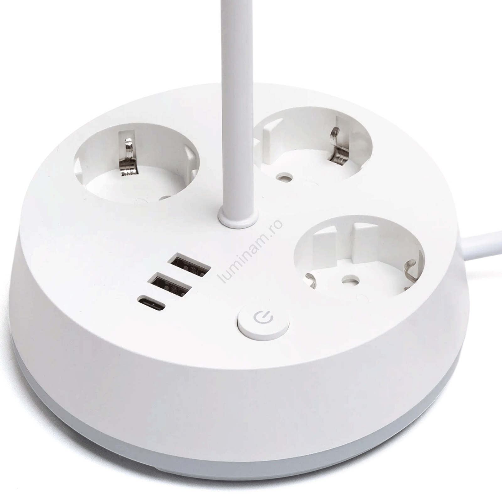 Aigostar - Lampă de birou LED RGBW, dimabilă, cu prize și port USB, 4,6W, 230V, 3000/4000/6500K, albă