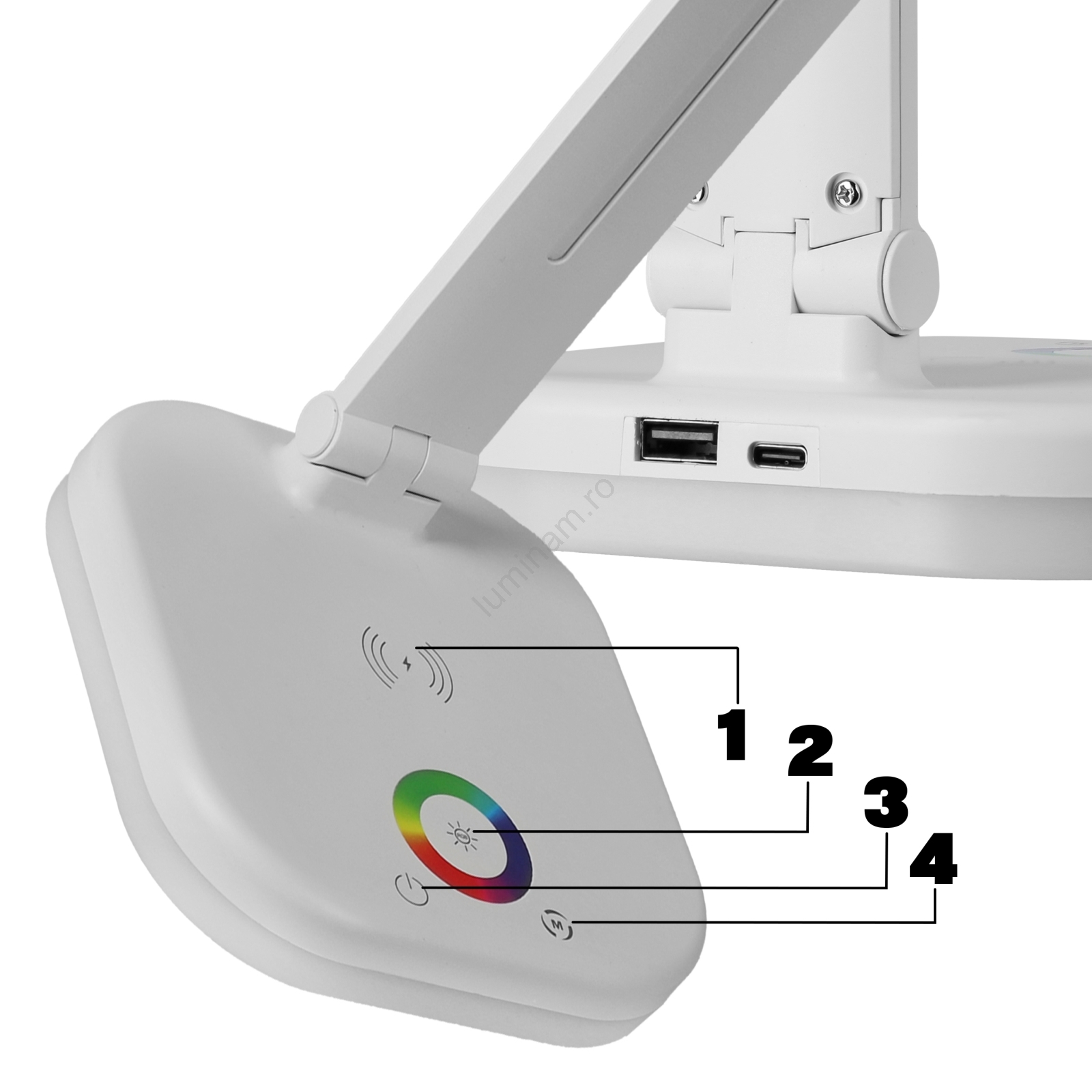 Lampă de birou LED RGBW dimabilă, cu încărcare wireless, LED/7W/5V USB, alb