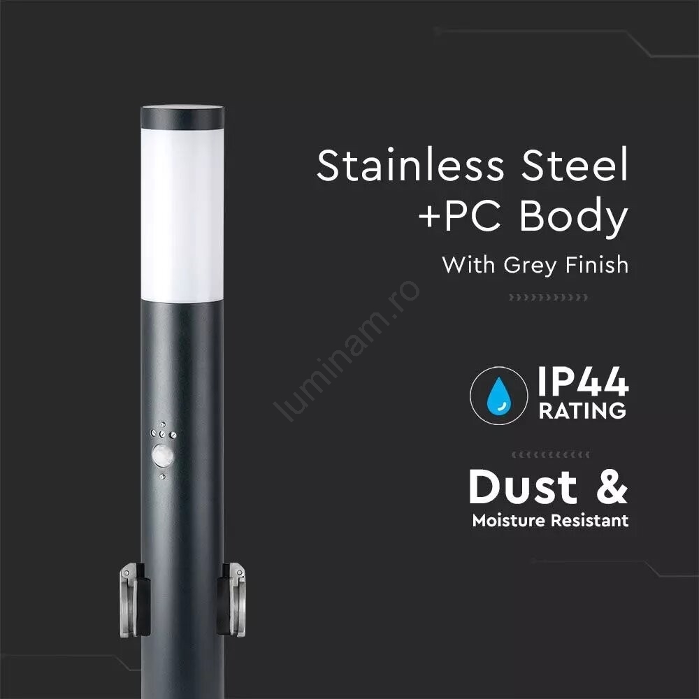 • Lampă de exterior cu senzor + 2 prize 1xE27/60W/230V IP44 60cm crom mat