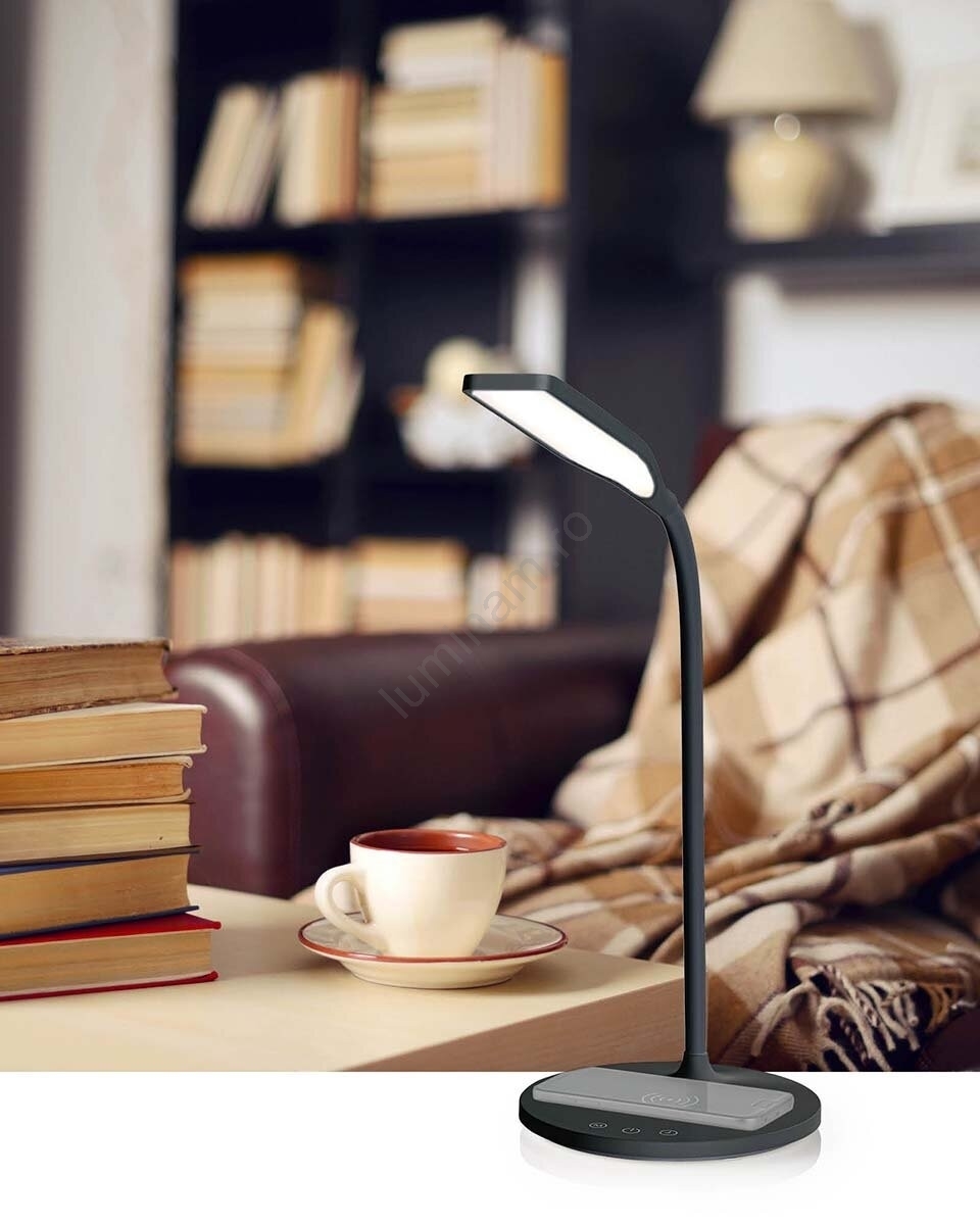 Lampă tactilă flexibilă dimabilă de masă cu funcție de încărcare fără fir de 15W Qi LED/5,5W/230V 2700-6500K negru