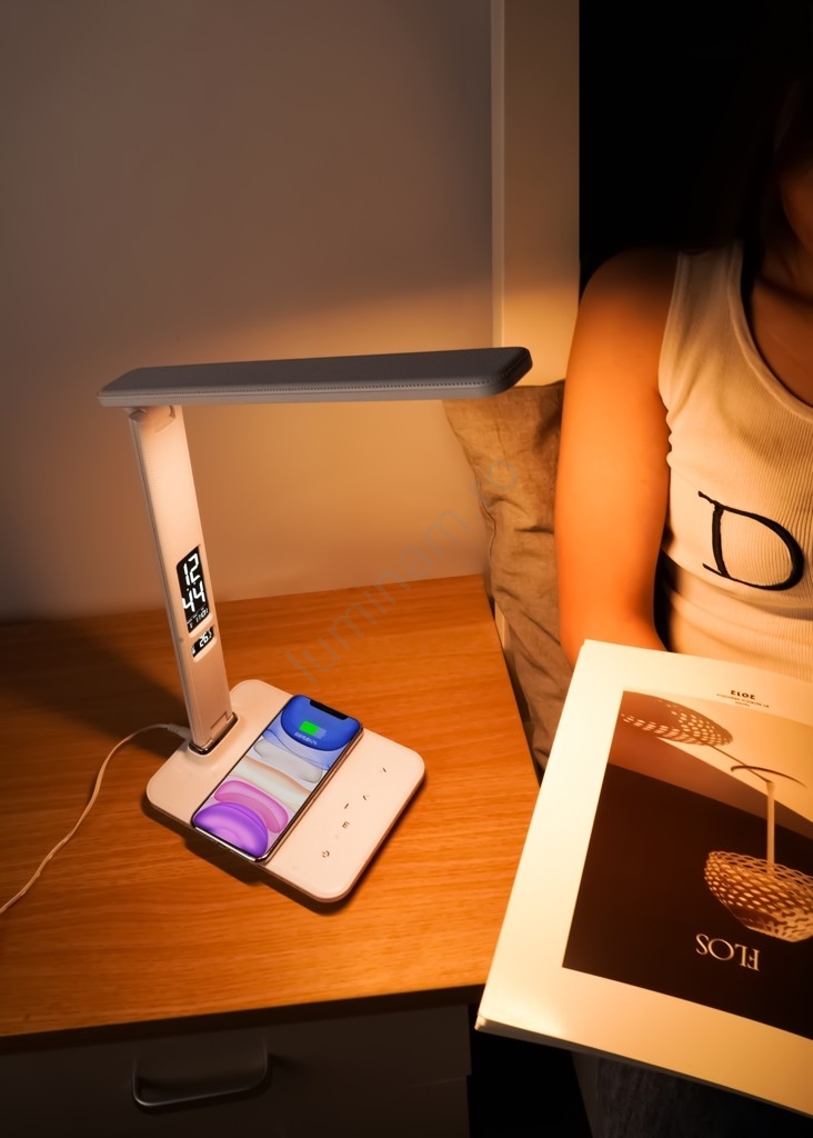 Brilagi - Lampă de birou LED reglabilă cu încărcare wireless QI și USB REGINA LED/8,5W/230V albă