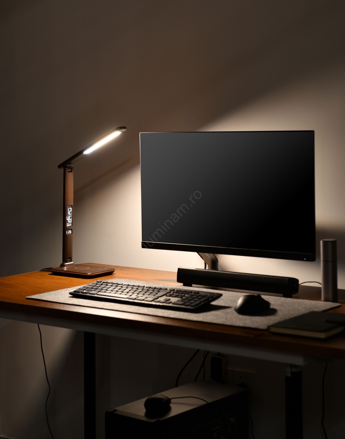 • Lampă LED dimabilă de masă cu încărcare fără fir Qi și USB KINGFISHER LED/8,5W/230V maro