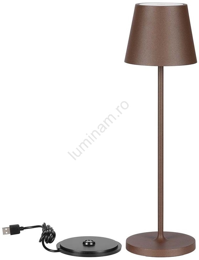 Lampă de birou LED reîncărcabilă cu touch, reglabilă, LED/2W/5V, 4400 mAh, 3000K, IP54, maro