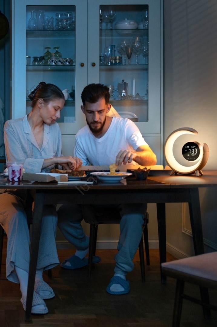 • Lampă de birou LED RGBW cu intensitate reglabilă și ceas deșteptător PEACOCK LED/20W/5V USB