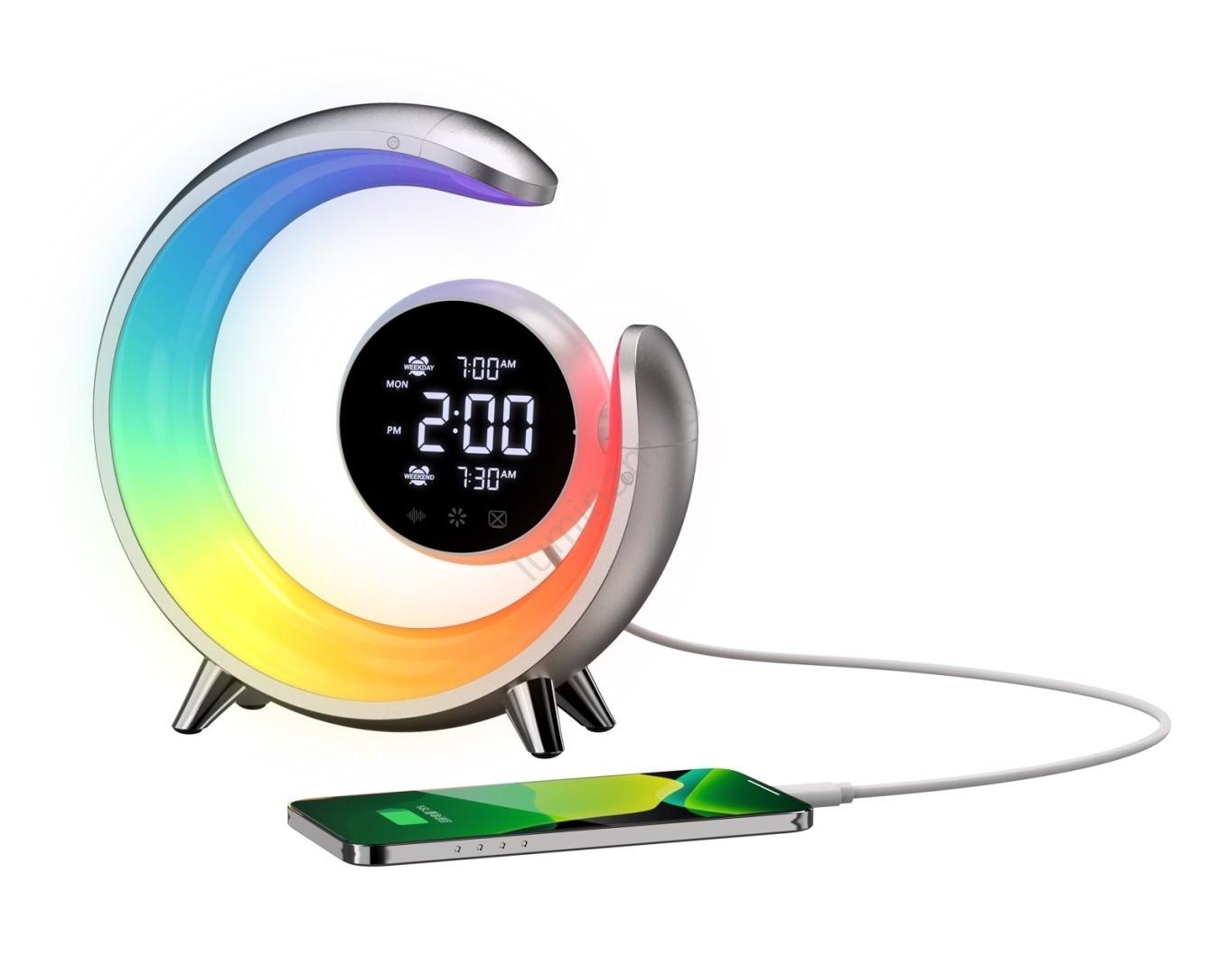 • Lampă de birou LED RGBW reglabilă cu ceas deșteptător LED/20W/5V USB argintiu