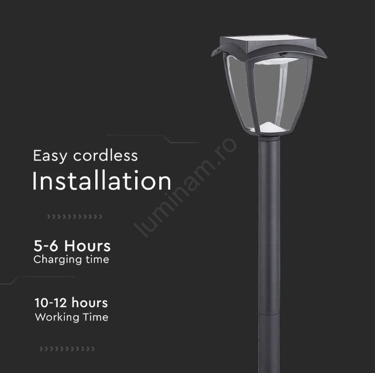 Lampă solară LED 2W, 230V, 93 cm, 3000/6000K, IP65, 2200 mAh