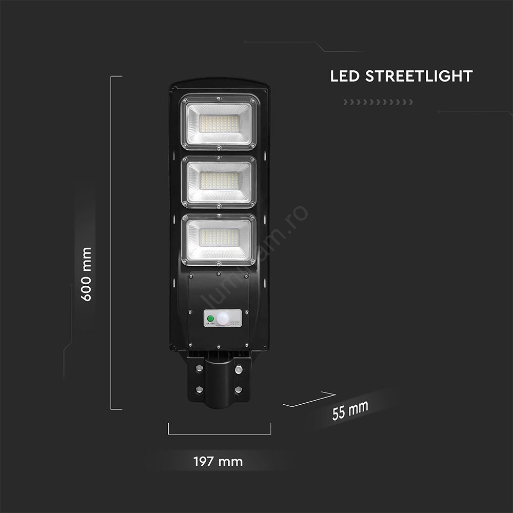 Lampă LED stradală solară cu senzor de mișcare și crepuscular LED/12W/3,2V 6000K IP65 10000 mAh negru + telecomandă