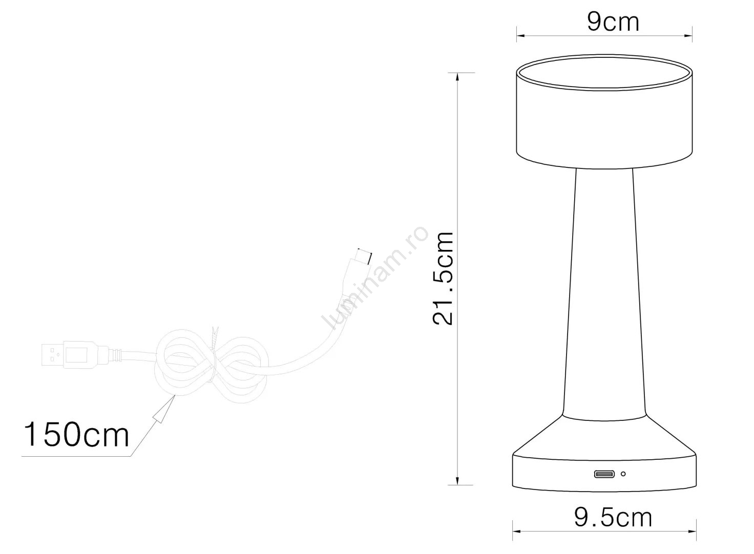 • Globo - Lampă de birou LED tactilă reglabilă, LED/1W/3,7V 2700K/4000K/6500K 800 mAh USB, neagră