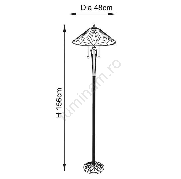 Endon 63934 - Lampadar Tiffany ASTORIA, 2xE27/60W/230V, diametru 48 cm