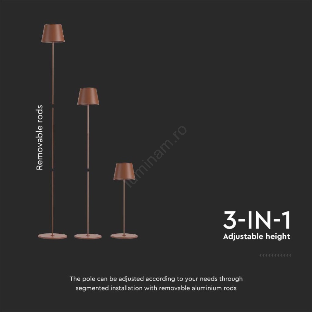 • Lampă de podea LED reîncărcabilă reglabilă 3 în 1 LED/4W/5V 4400 mAh 3000K IP54 maro