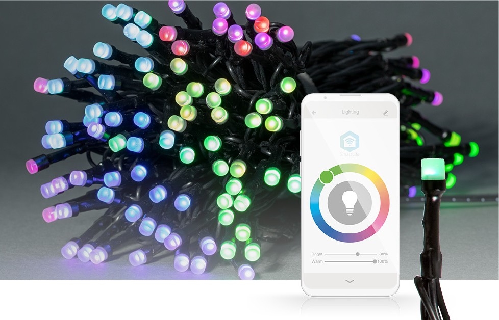 • Cu ajutorul funcției de control vocal prin Amazon Alexa sau Google Assistant, lanțul poate fi pornit sau oprit sau se poate regla luminozitatea acestuia doar cu ajutorul vocii.