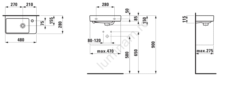 • Pachetul conține lavoarul fără sifon și fără baterie.