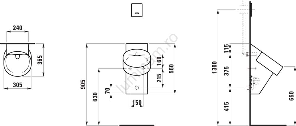 • Pisuarul este fără margine, eliminând zonele în care se pot acumula murdăria și bacteriile.