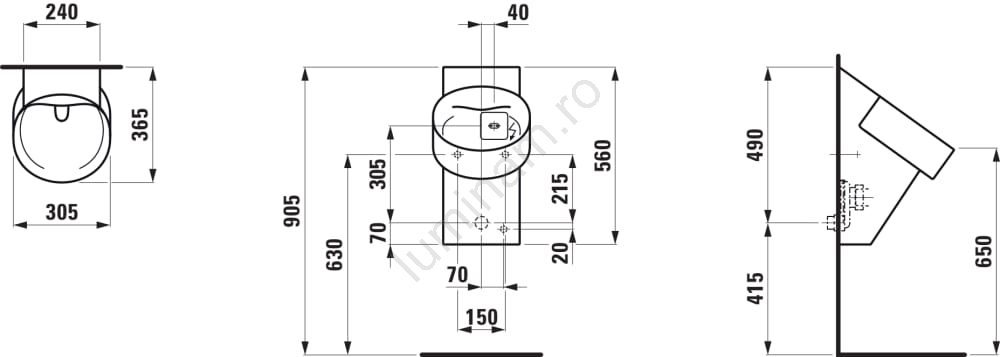 • Pisoarul are un senzor cu infraroșu integrat în partea superioară, care detectează utilizatorul.