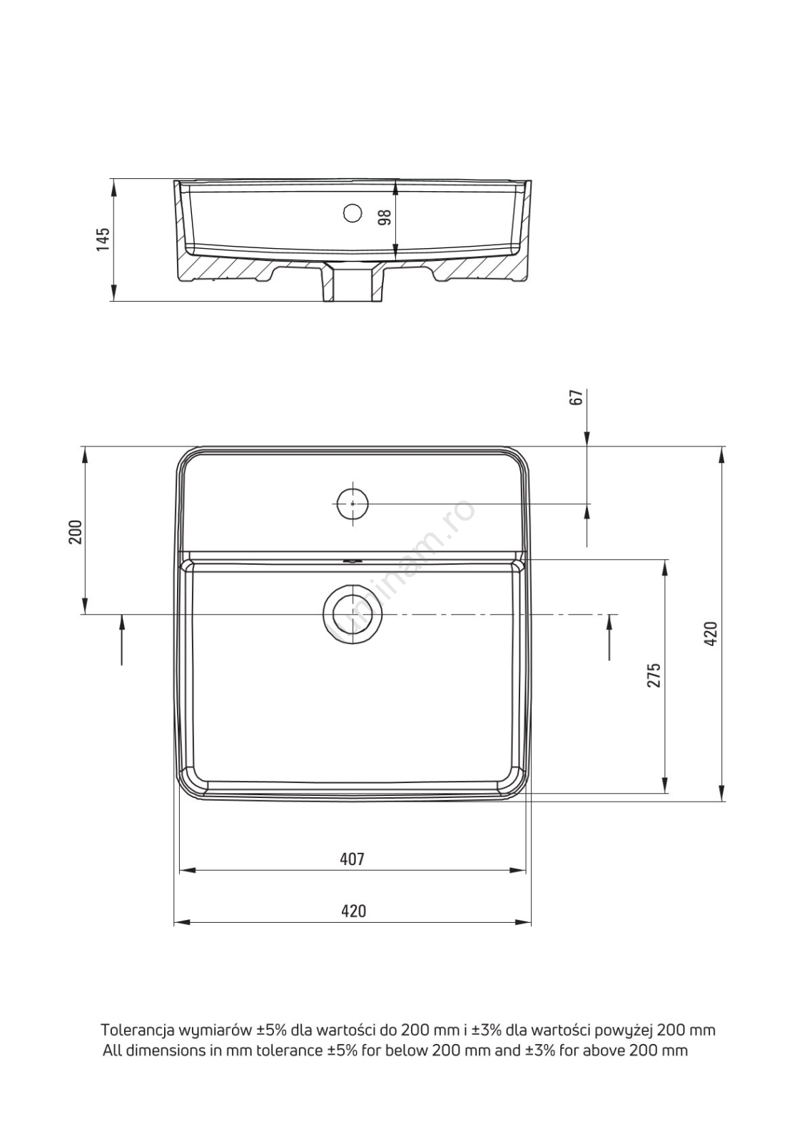 • Pachetul conține doar lavoarul, fără sifon și baterie.