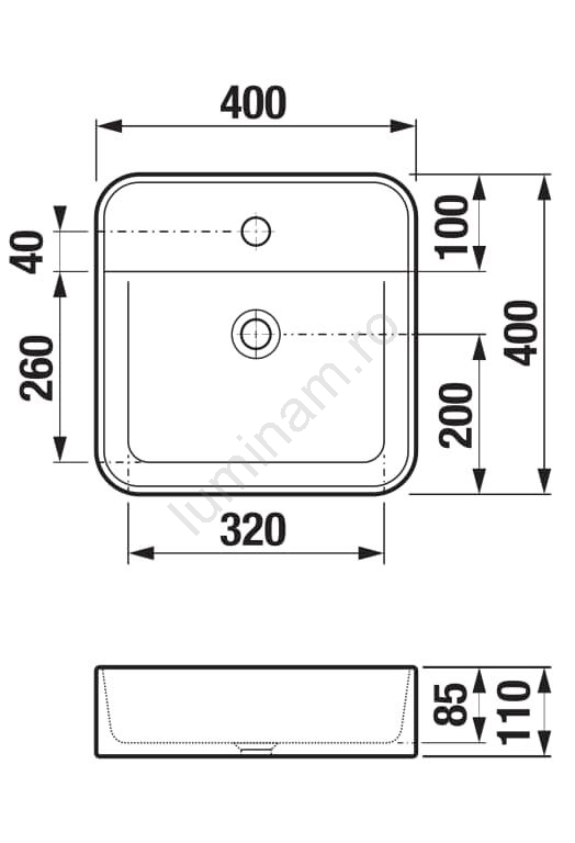 • Chiuveta este destinată montării pe blat, oferind o amplasare flexibilă și posibilitatea de a combina cu diferite tipuri de blaturi pentru baie.