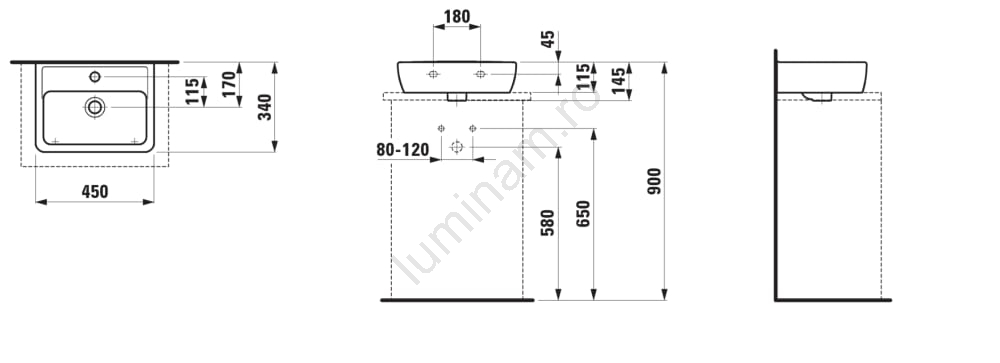 • Chiuveta este destinată montării pe blat, oferind o amplasare flexibilă și posibilitatea de a combina cu diferite tipuri de blaturi pentru baie.