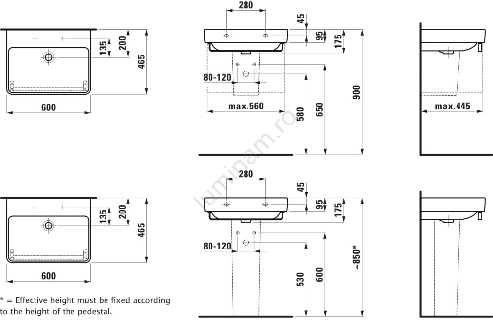 • Chiuveta este destinată instalării pe blat sau ca chiuvetă suspendată pe perete.