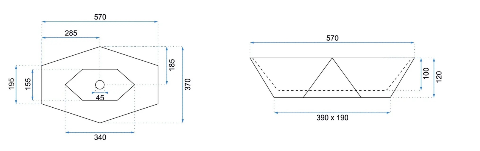 • Bateria pentru lavoar și ventilul de scurgere nu sunt incluse în pachet.