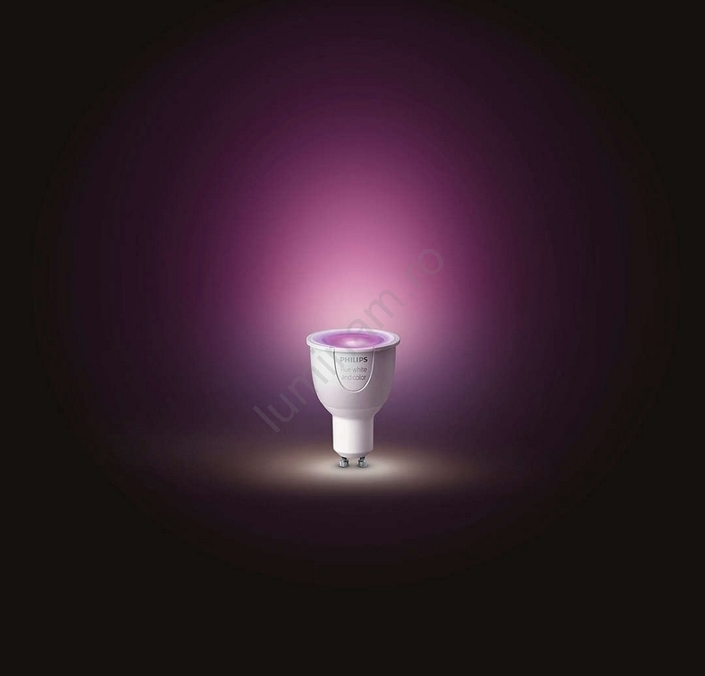 • Bec LED independent Philips Hue White And Color Ambience cu soclu GU10.