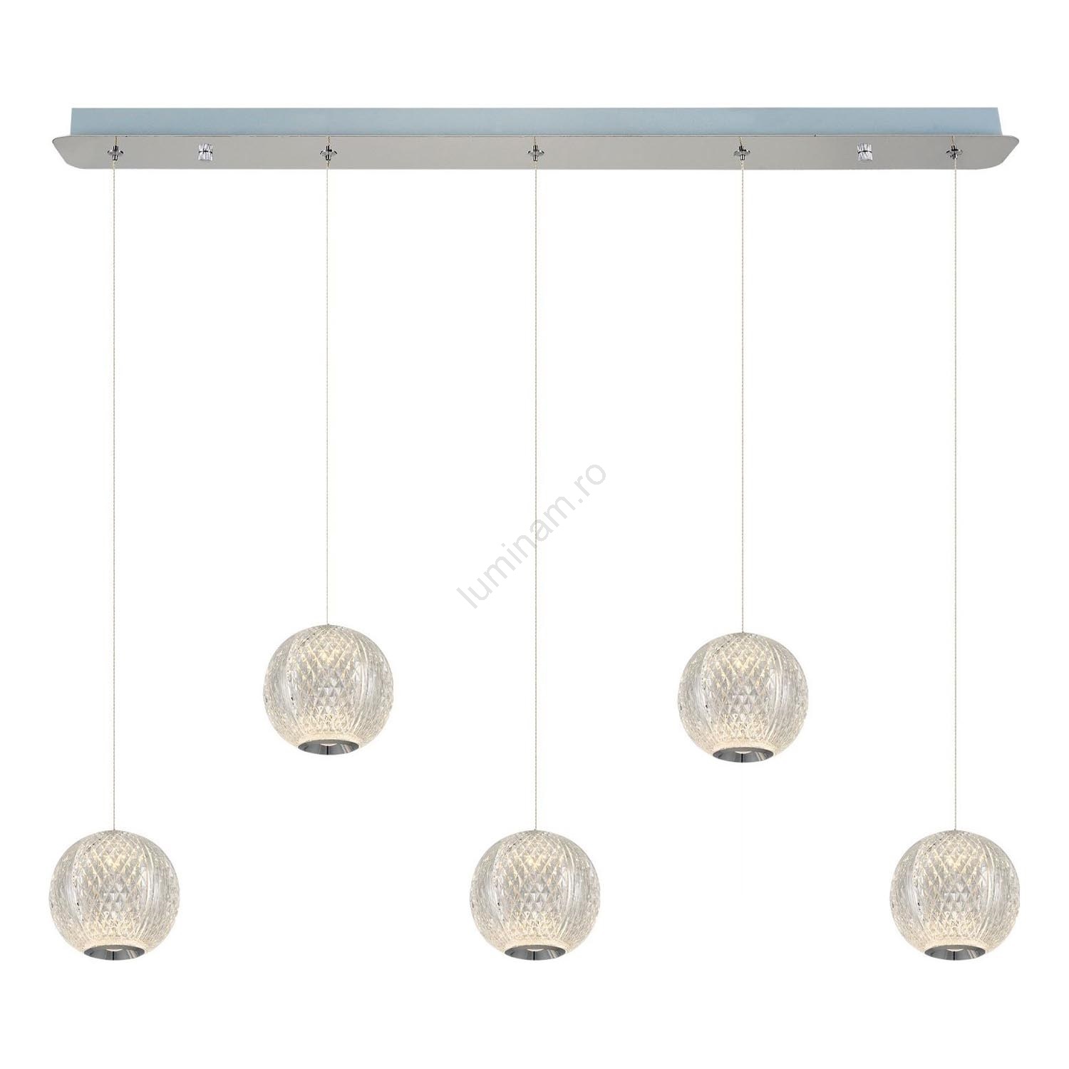 Lustră LED suspendată pe cablu CREMONA, 5 x 5 W, 230 V, 3000 K, crom mat