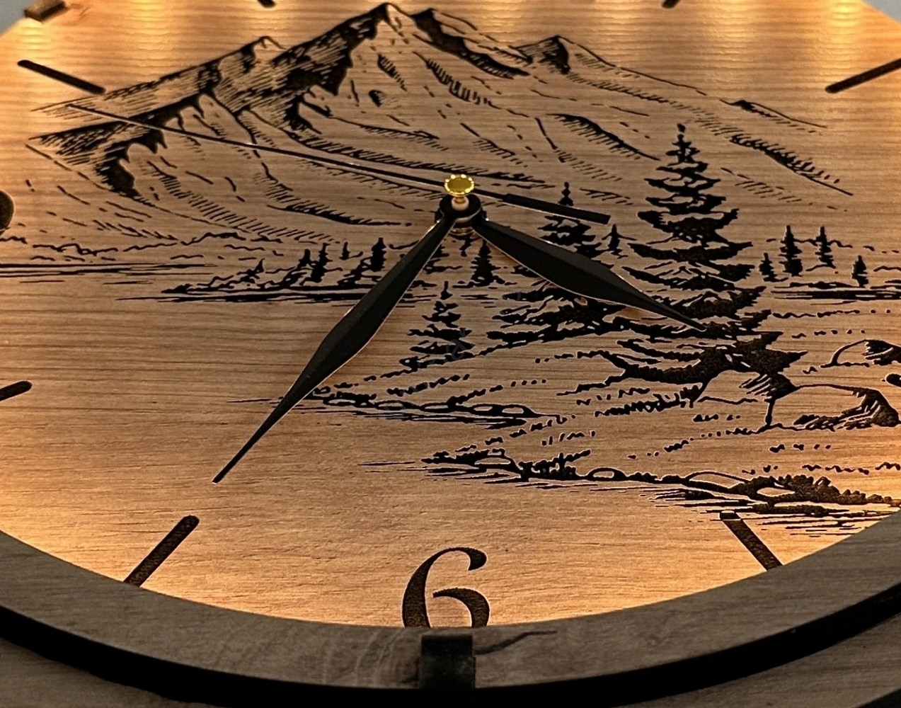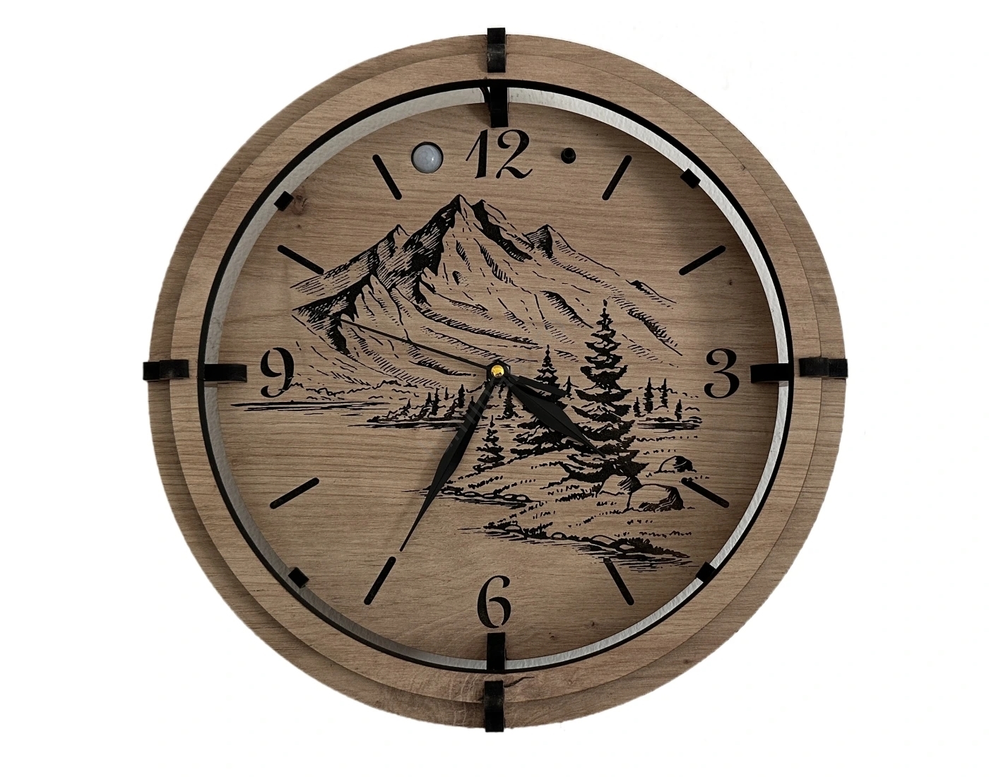 • Li-Go 23676/DUB5 - Ceas de perete, 1 x AA, diametru 32 cm, stejar/Munți