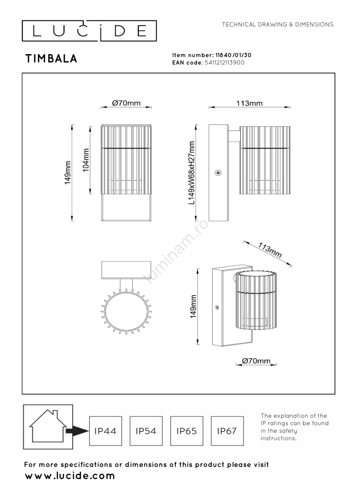 Articolul Lucide 11840/01/30 - Aplica de perete pentru exterior TIMBALA 1xGU10/7W/230V IP44 este caracterizat printr-un aspect plăcut și funcțional.  Produsul funcționează cu becuri cu soclu GU10. De aici se pot cumpăra alte becuri la prețuri avantajoase.