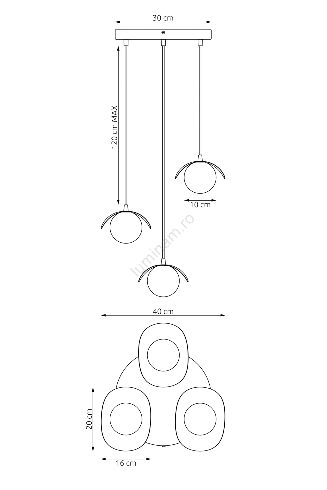 • Lustră cu cablu RITUAL 3xG9/8W/230V, neagră