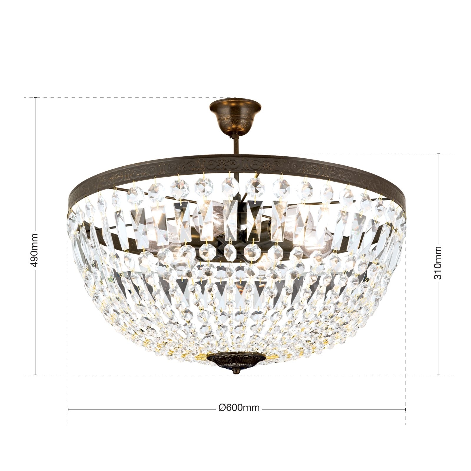 Lustră de cristal pe tijă ARILA 6xE27/60W/230V d. 60 cm maro/patină