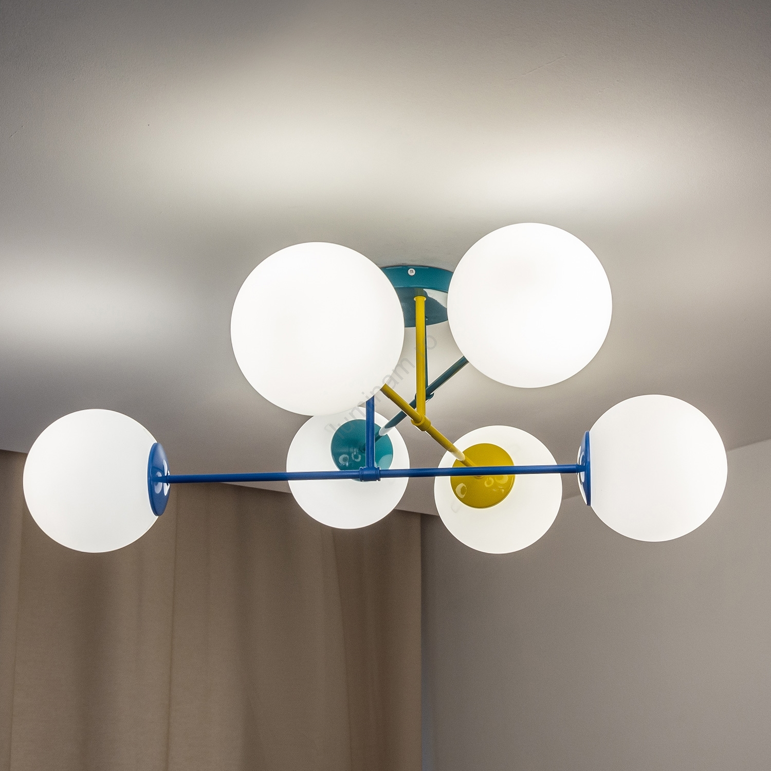 Lustră de tavan MOON, 6 x E27, 15 W, 230 V, turcoaz/galben/albastru