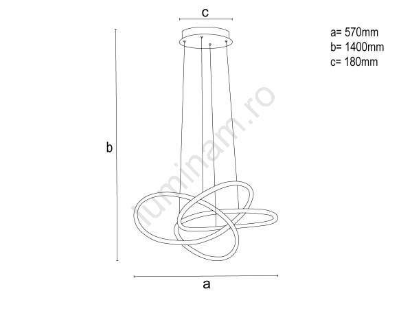 • Lustru LED dimabil suspendat pe cablu, 95W/230V, 3000-6500K, Ø 57 cm + telecomandă