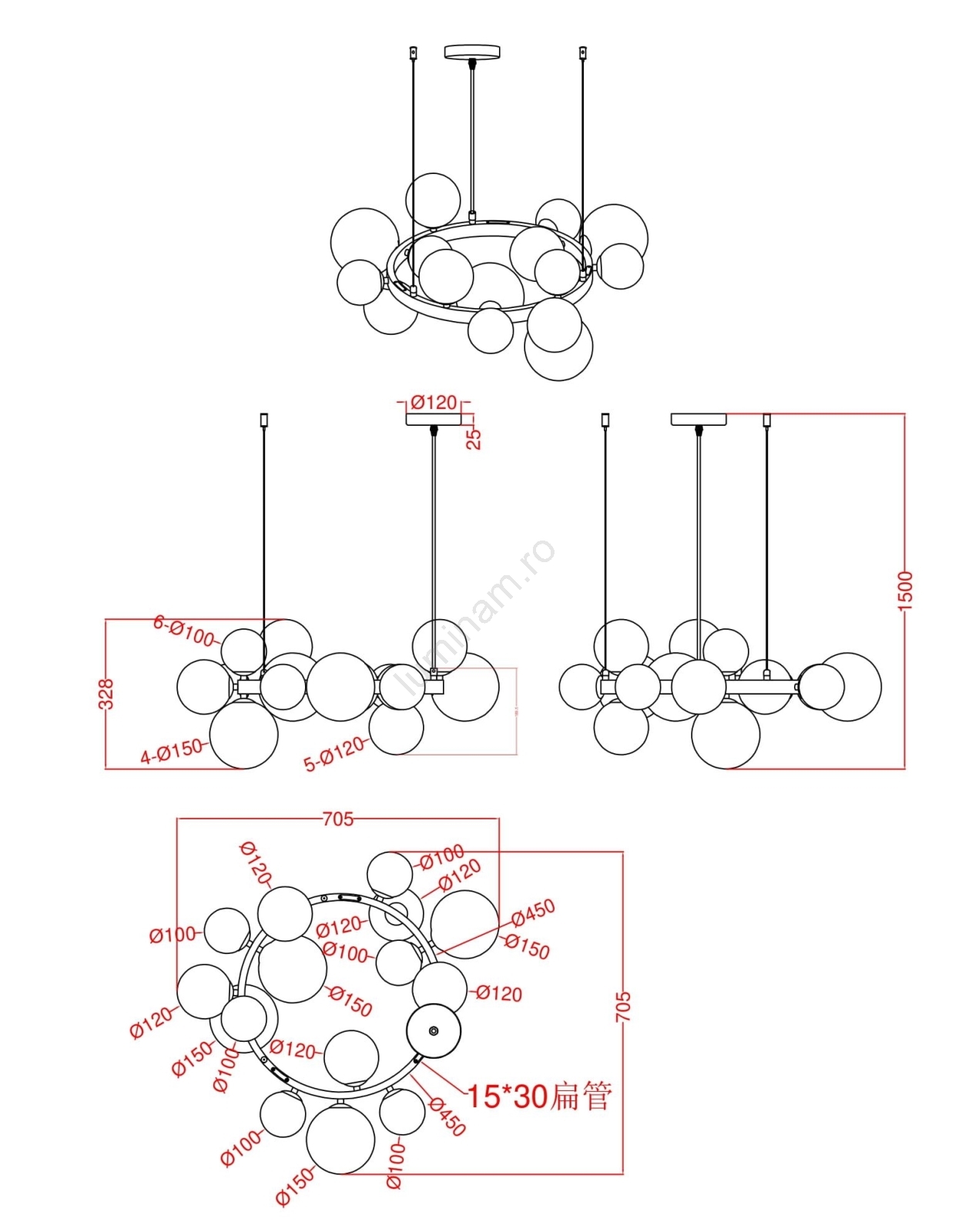 Lustră LED pe cablu Wofi 5014-1505W VILLA 15xG9/3W/230V negru