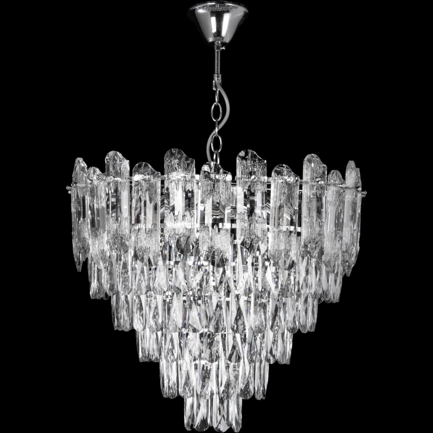 Candelabru LED suspendat pe lanț, 9 x E27/60W/230V + 6 x LED/6W, Ø 50 cm, crom lucios