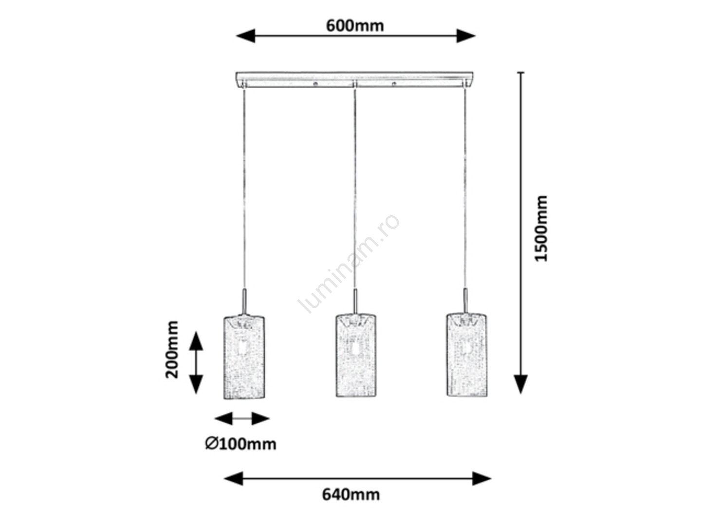Lustra suspendată triplă Callia, care întruchipează un stil modern, va deveni o piesă impresionantă de mobilier în livingul, sala de mese sau bucătăria dumneavoastră. Acest model gri este prevăzut cu o bază decorativă pătrată și lungă, fiind fabricat integral din metal. Aspectul său unic provine de la abajururile cilindrice cu structură perforată, prin care lumina se filtrează misterios din interiorul corpurilor de iluminat. Lustrul suspendat poate fi utilizat cu trei surse de lumină, fiecare cu o putere de până la 25W, soclu de tip E14. Pentru un efect modern și luminos în încăpere, alegeți becuri cu lumină albă naturală. Dimensiunile lustrei suspendate triple Callia sunt următoarele: lățimea totală a corpului de iluminat este de 640 mm, diametrul fiecărui abajur este de 100 mm, înălțimea acestora este de 200 mm, distanța față de tavan este de 1.500 mm, dimensiunea de montaj este de 600 mm. Acest model se livrează fără surse de lumină.