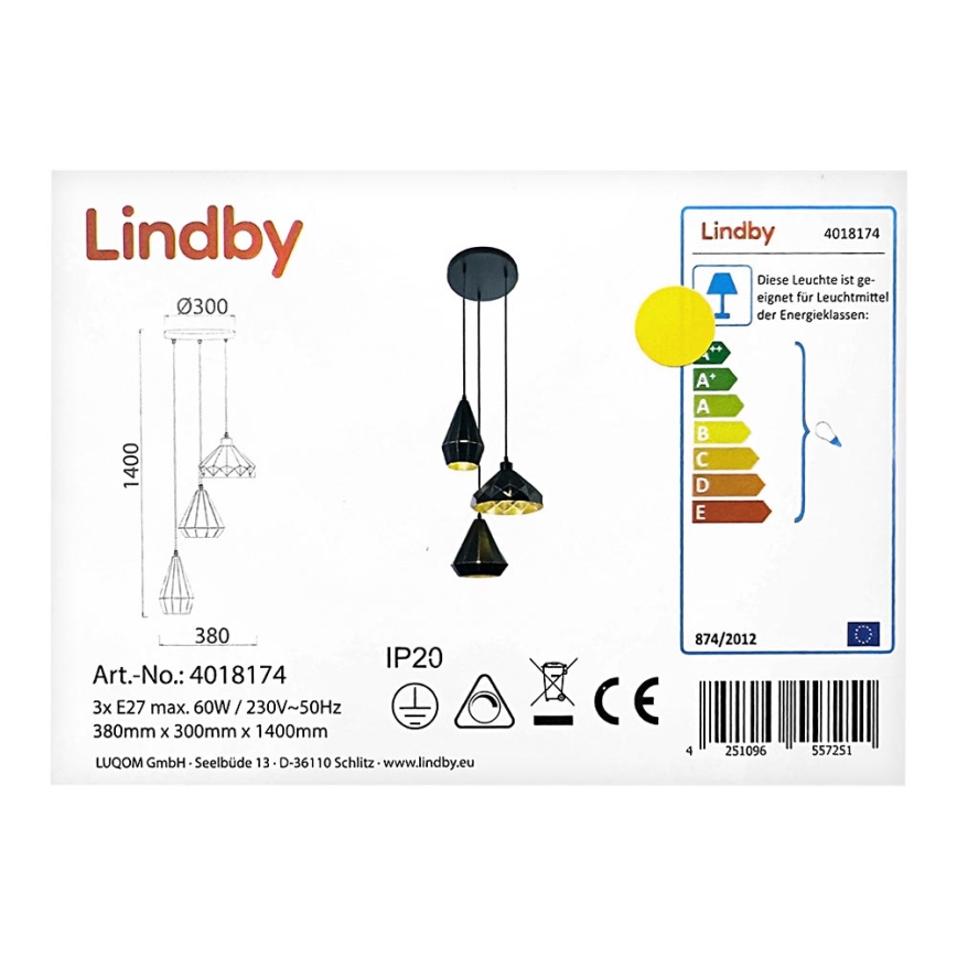 Lustră pe cablu 3xE27/60W/230V Lindby
