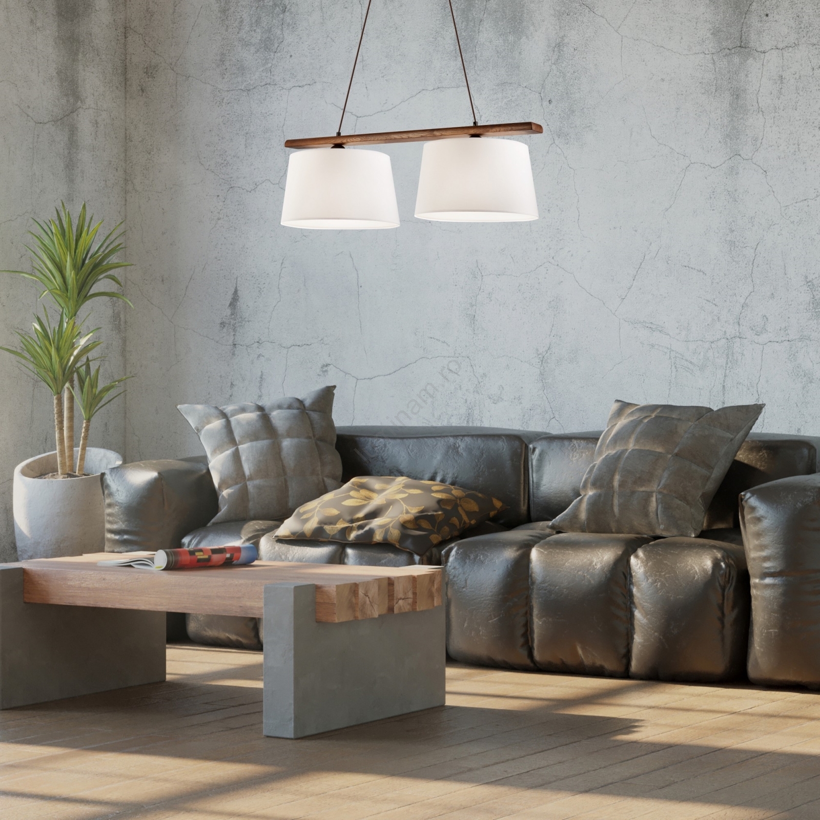 • Lustru suspendat pe cablu AIDA, 2 x E27, 60 W, 230 V, diametru 35 cm, stejar/nuc