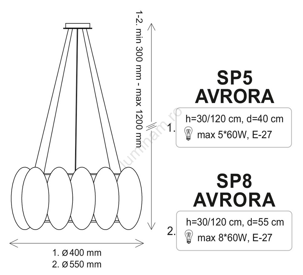 Lustră pe cablu AURORA 5xE27/60W/230V